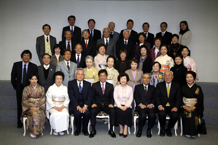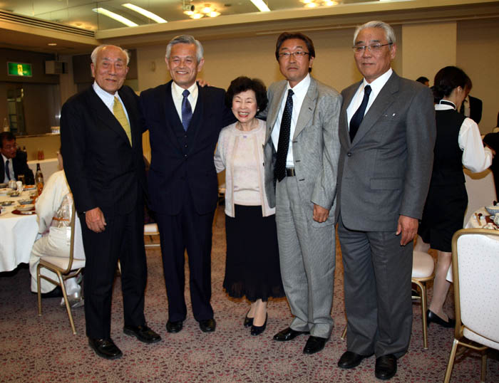 写真上:歴代会長と陽子モスナーさん(左から 美馬初代会長、、森住現会長、陽子さん、細川前会長、そして蓮池前会長) 写真下:参加者全員で集合写真を撮影しました。